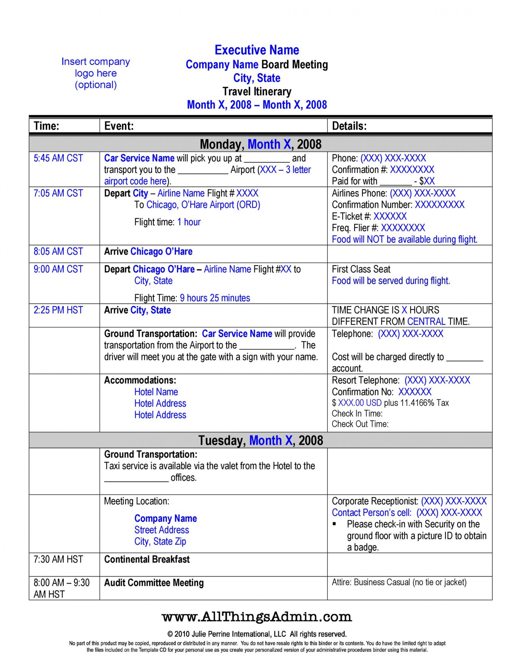Business Travel Itinerary Template - 23+ (Word, Exce…