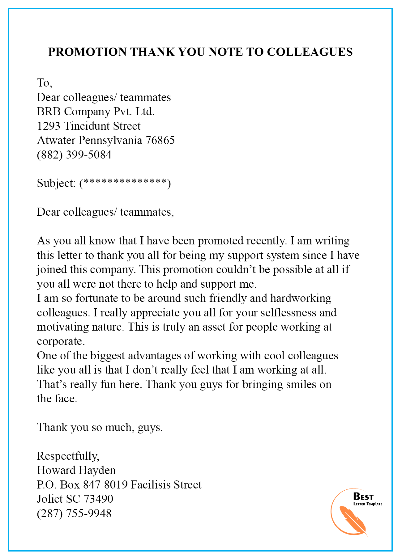 Sample Promotion Thank You Letter Format - Assignment Point